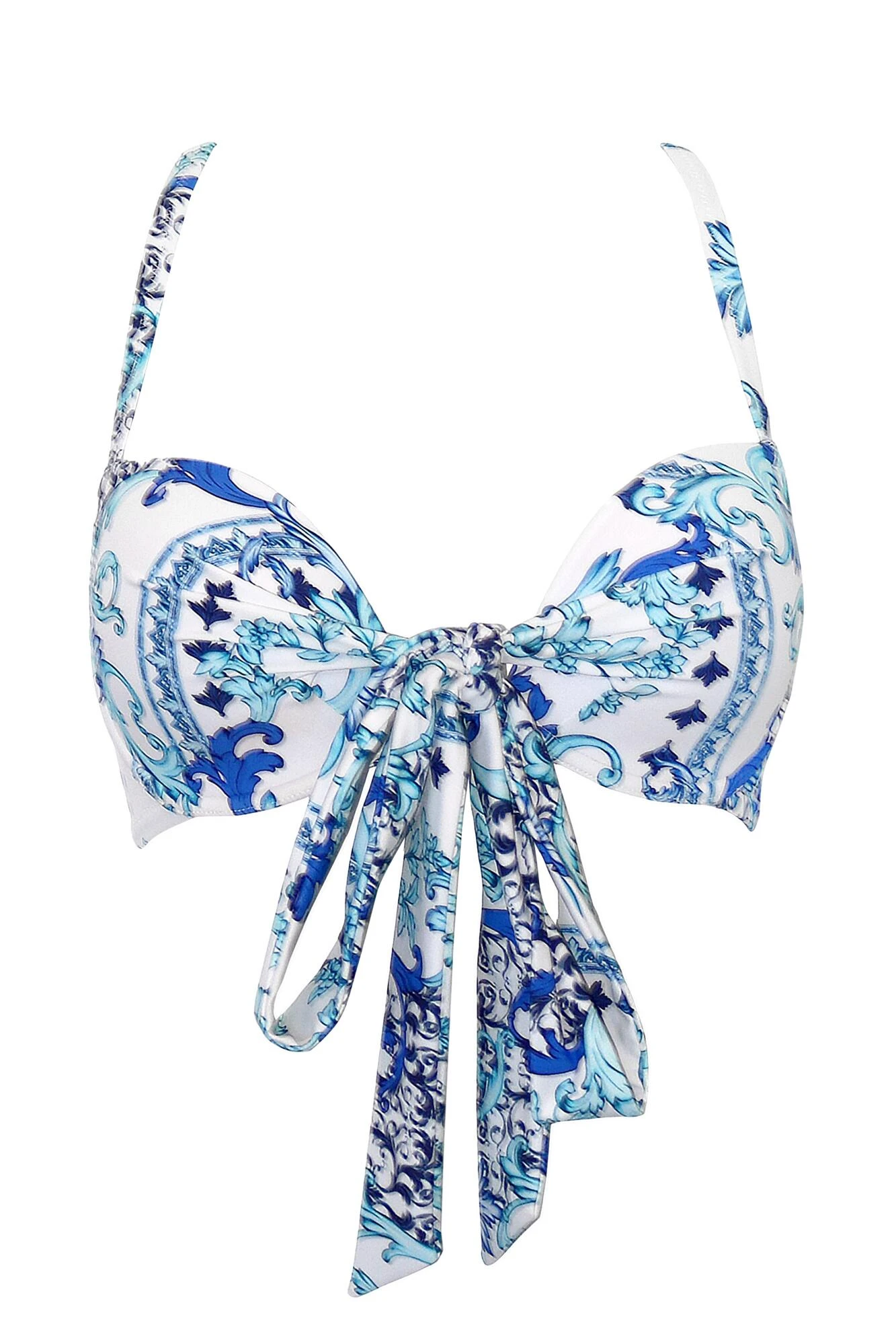 Summer is well and truly here with the Amalfi Front Fastening Bikini Top. This padded and underwired bikini top will give you all the support and boost you need for the summer season. This gorgeously, flattering wrap around style includes a front clasp fastening. Inspired by the glamour of the Amalfi Coast, match the Amalfi Front Fastening Bikini top with bikini bottoms from the collection.