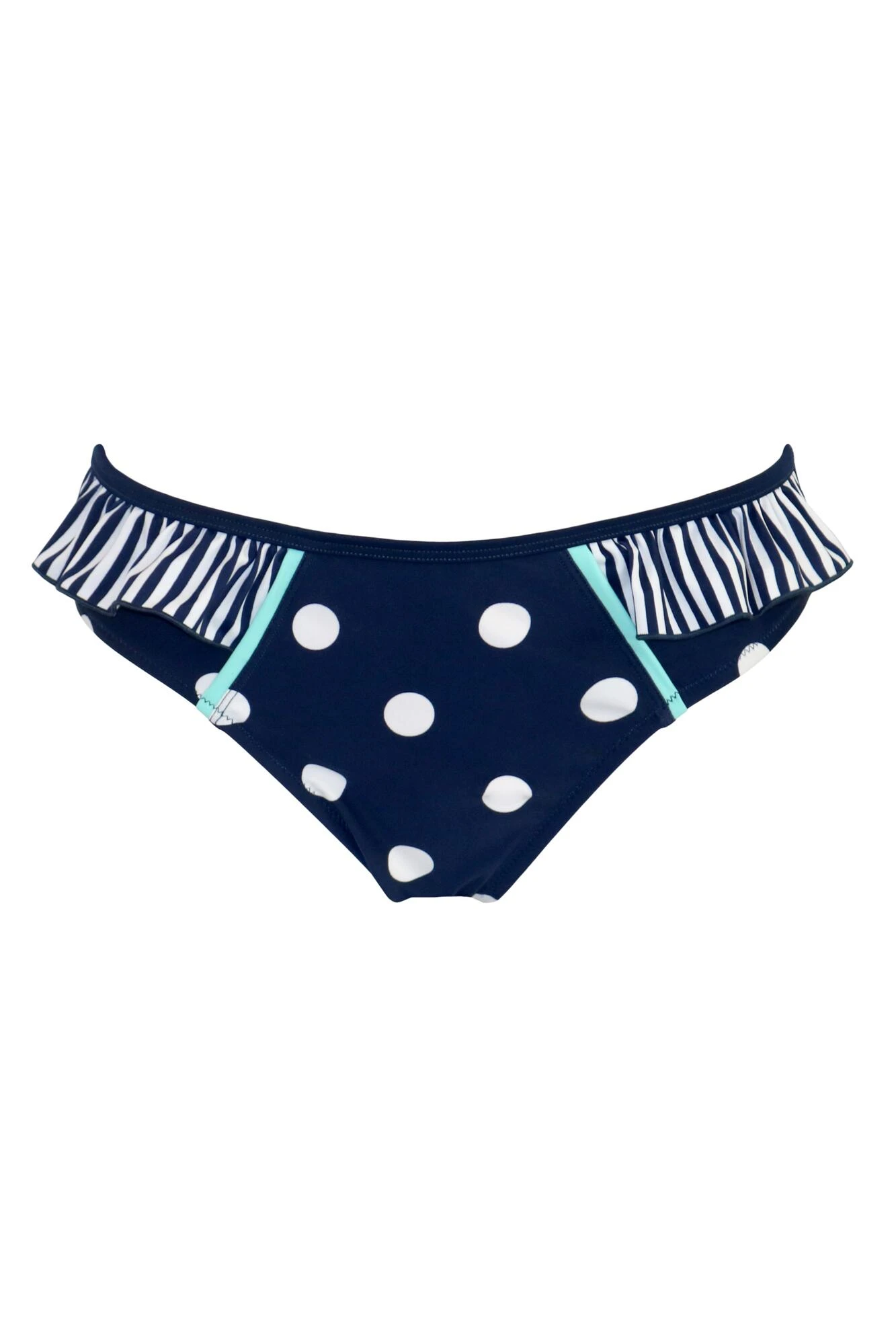 Add some flirty and feminine details to your swimwear collection with the Beach House Frill Tab Brief. Providing you with medium coverage, make a statement in this stylish brief with contrast stripe frill and detailing. For all-over nautical style pair, the Beach House Frill Tab Brief with a bikini top from the Beach House collection.