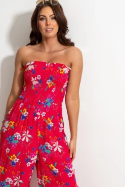 Shirred Crop Leg Jumpsuit – Red Tropical