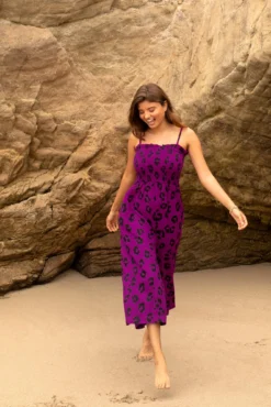 Shirred Crop Leg Jumpsuit – Violet Leopard