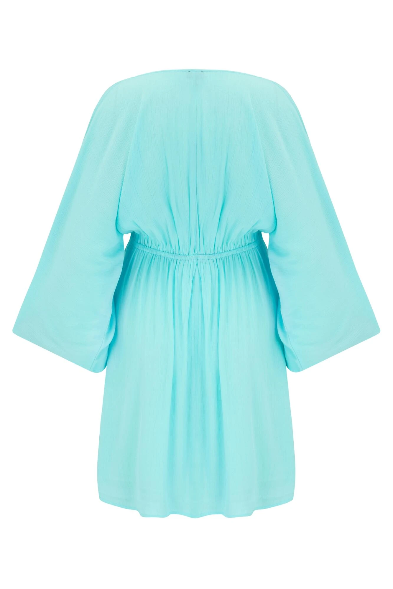 Ideal for those days spent on the beach or by the pool, this beautiful cover up is made from a flattering crinkle fabric for a relaxed look. Feel confident, comfortable, and stylish on your next getaway in this beach cover up with an elasticated waist and flattering V-neckline. You’ll elevate your beachwear look in this cover up with rattan effect plastic O-ring detailing, and breathable 3/4 length sleeves.