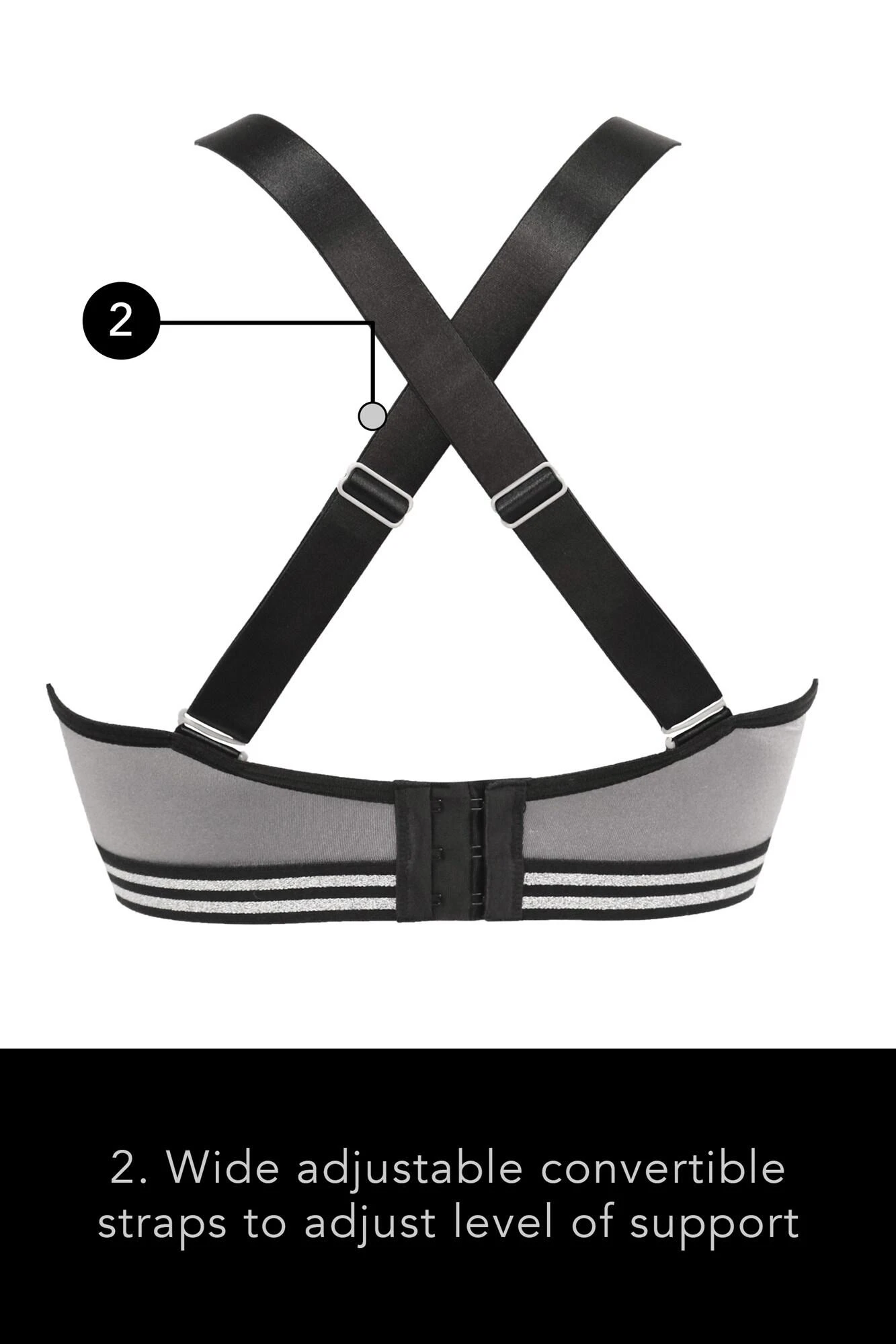 - Wide adjustable convertible straps