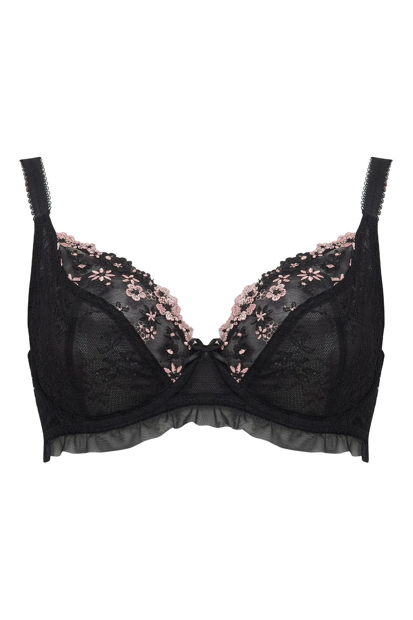 - Delicate floral embroidery over cups with soft mesh upper cup