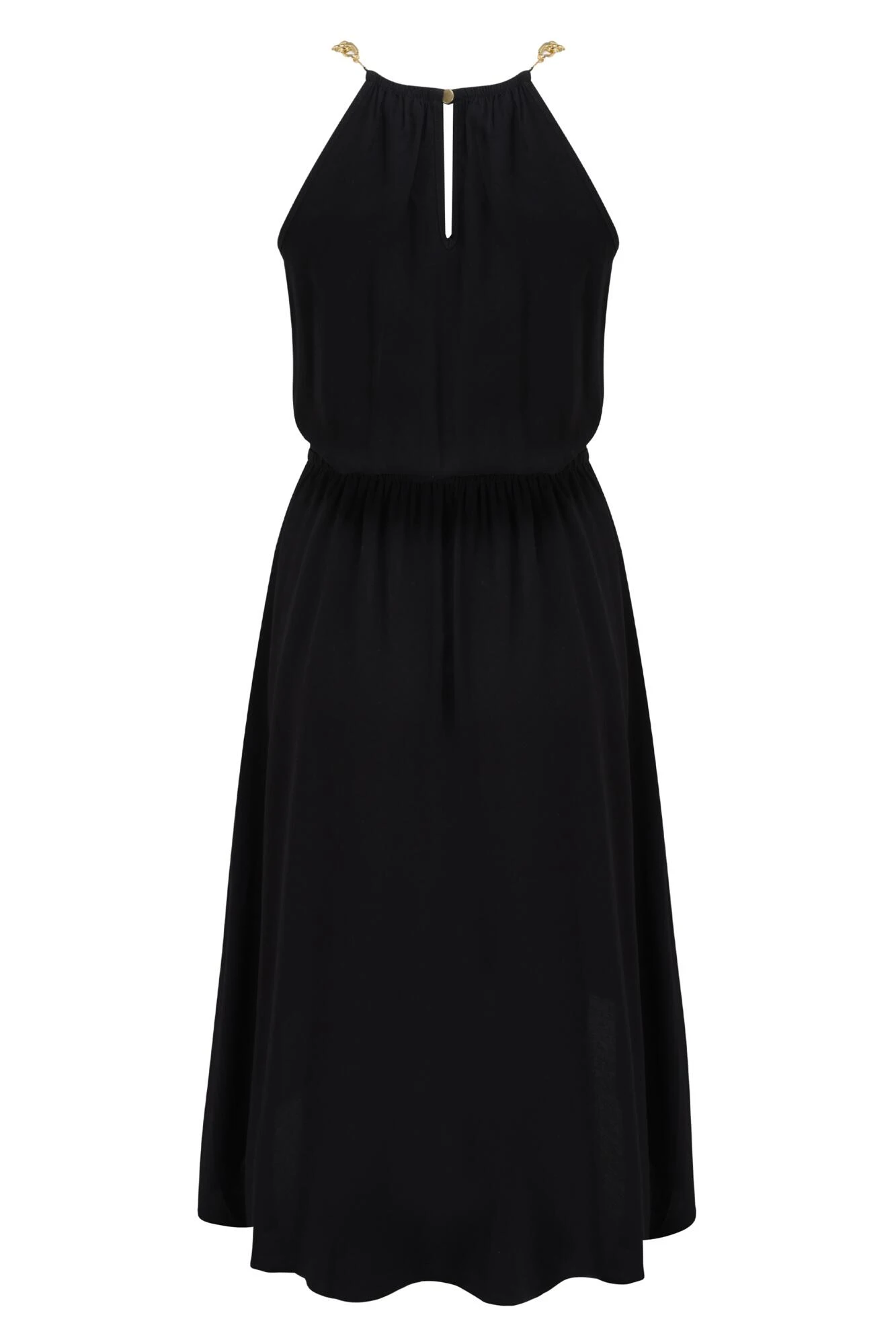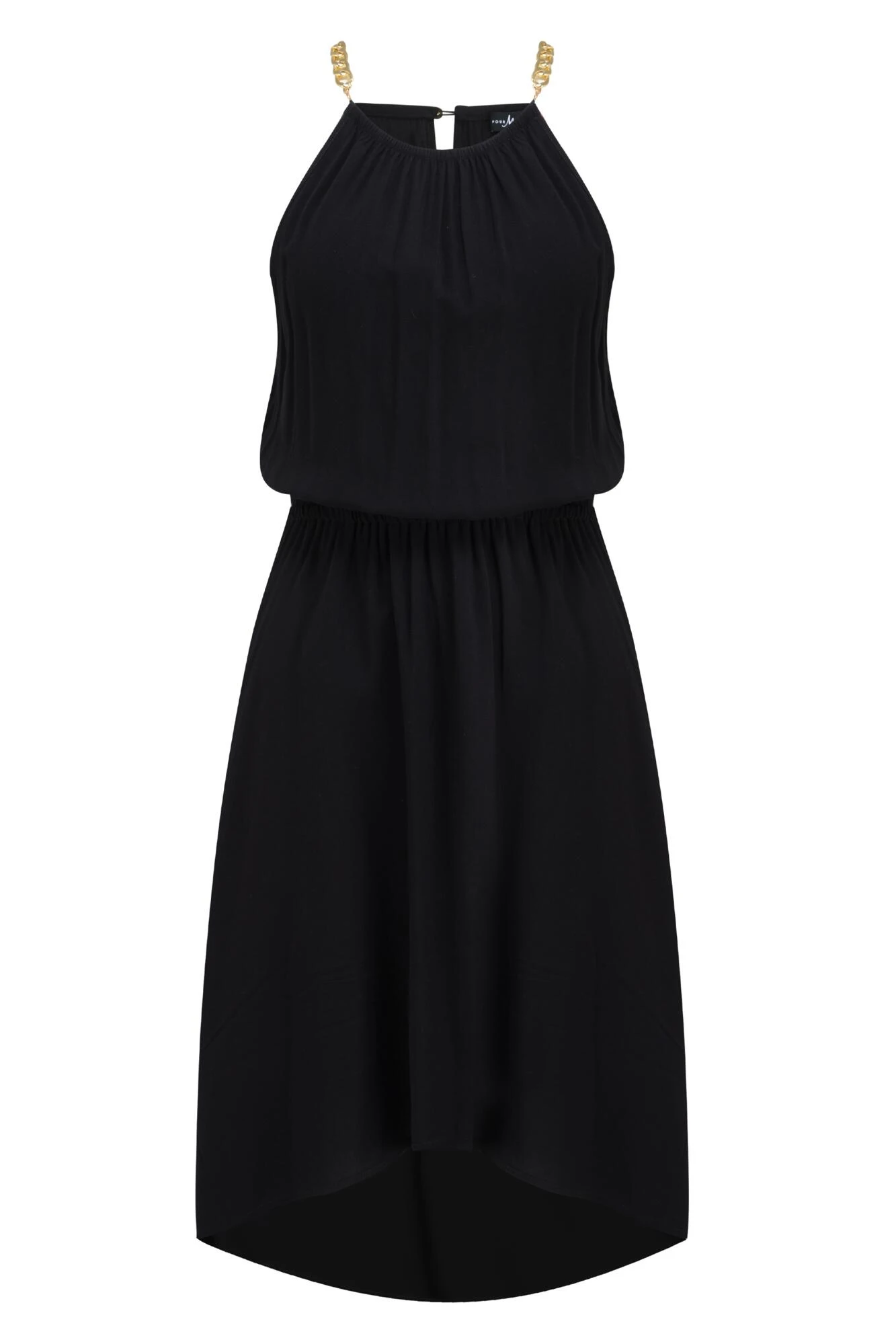 Take this look all the way from beach to bar. This fabulous high neck beach dress adorned with removable gold chain strap detail is the perfect piece to throw over your bikini and go. Take day dressing to another level in this beautiful beach dress made from light and breathable material. With a drop hem and side split for a cheeky summertime look.