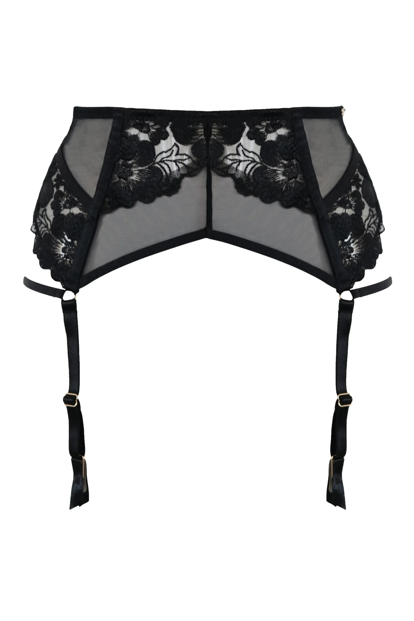 Find the perfect lingerie look with the India Bold Embroidery Deep Suspender. Cover your beautiful body in beautiful bold embroidery and semi-sheer mesh. This stunning style is elasticated and features adjustable suspender straps to wear how you want in comfort and style. Finished with gorgeous gold hardware. Match with the lingerie from the India Bold Embroidery collection for a sensational look.