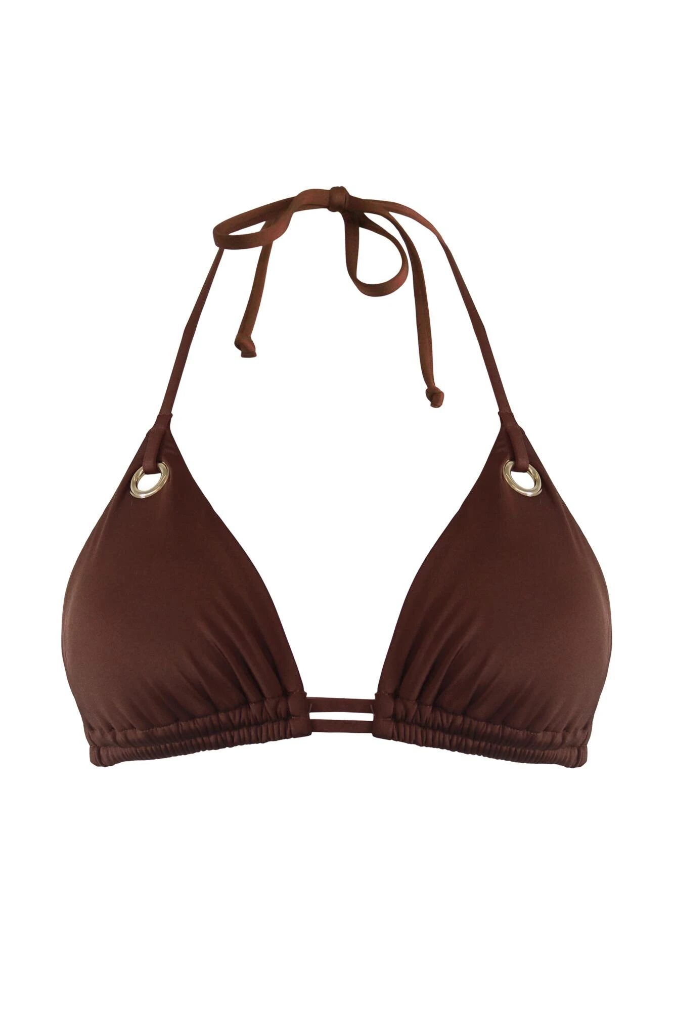 India loves triangle bikinis. But she wanted to make sure that everyone could wear the teeny tiny style in comfort. That’s why the fabulous Triangle Bikini Top from the model’s own collection with Pour Moi is full of extra flattering details. There are moulded cups to add shape and uplift, plus a double string tie-up for extra security when you’re playing in the surf. With glam gold hardware to finish the look, the Triangle Bikini Top is the perfect match with the Tie Side Bikini or V Brief, for beach body confidence from top to toe. We take the impact that our business has on the planet seriously that is why our India Triangle Bikini Top is made from recycled materials.