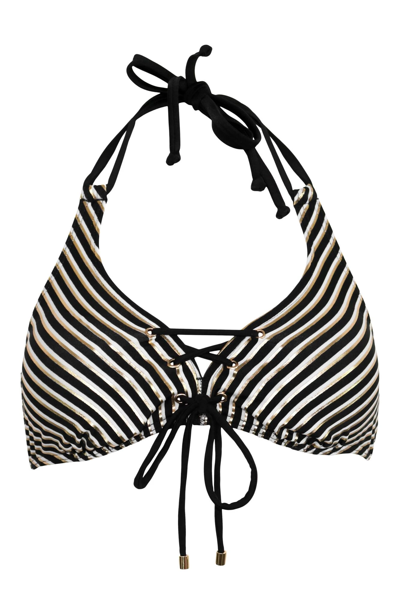Embrace the nautical vibes in the Radiance bikini top. This halter neck style with rope lace up detailing will have you ready to hit the beach in no time. The padded cups are removable giving you the option to wear them when needed. Beautifully cut for a flattering fit. Match with our Radiance bikini briefs for a relaxed summertime look.