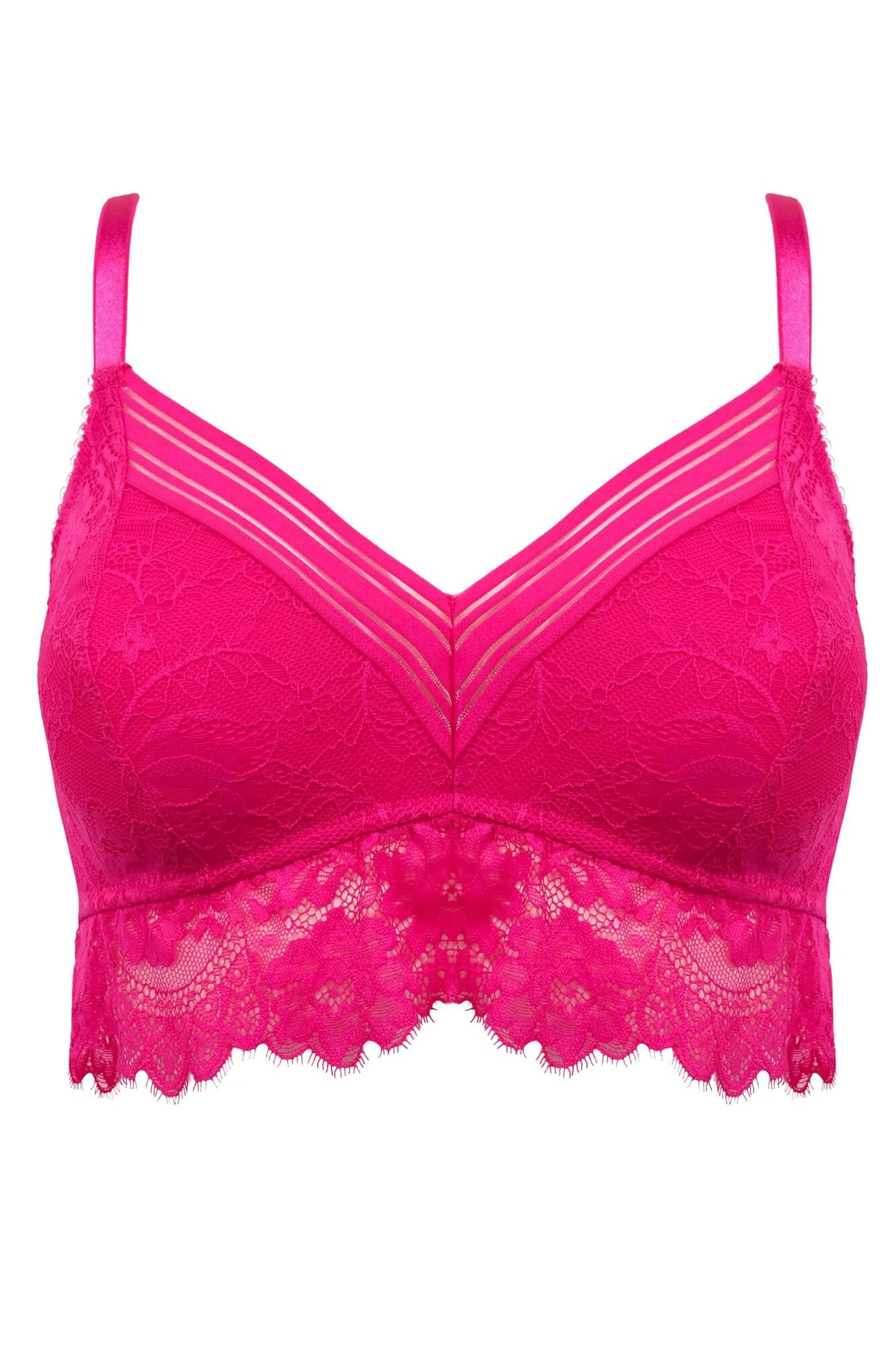 Lingerie that makes you feel just as good as you look? Come join the Revolution! This beautifully soft, non-padded non-wired triangle bra bralette feels supportive and you’ll love the feminine look of the all-over eyelash lace cups and frill underband. The racer stripe underband keeps the look luxe and on-trend and the gorgeous V-neck plunge gives great shape. Add a matching Revolution brief in your choice of shape for instant body confidence, guaranteed.