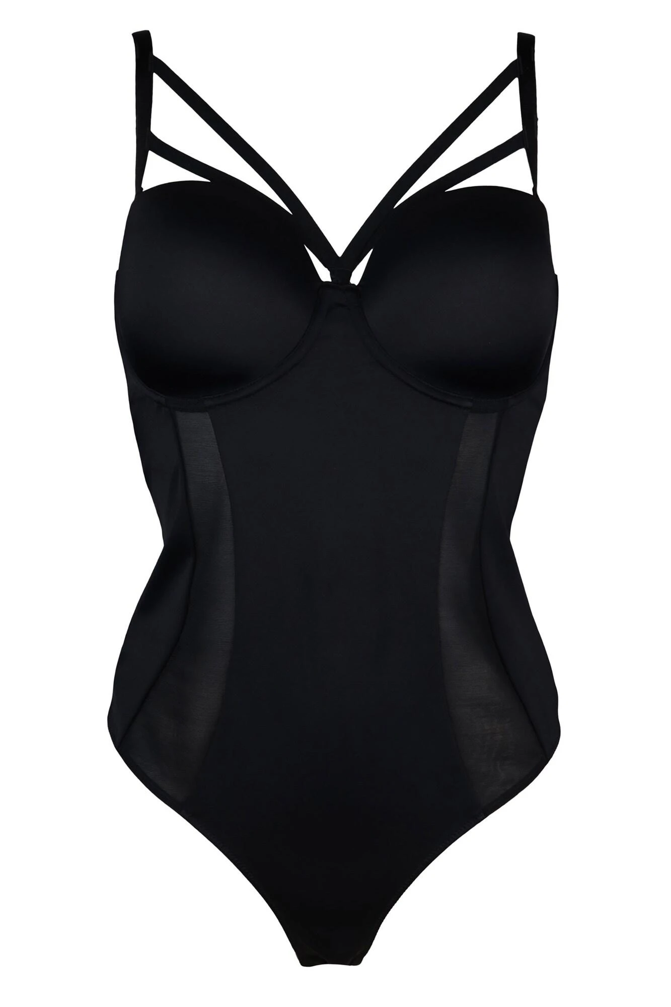 Steal the spotlight this season in our Strapped Underwired Body. This gorgeously-flattering style features removable and adjustable straps that help to frame and accentuate your bust. With mesh side panelling, this Body will help to cinch and show off your hourglass figure. Wear as either a lingerie piece or on a night out with jeans for a sexy, worn to be seen look.